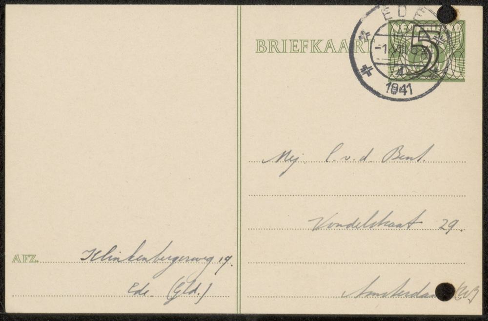 Distributiestamkaart op naam van Hilligje Jantina Do...