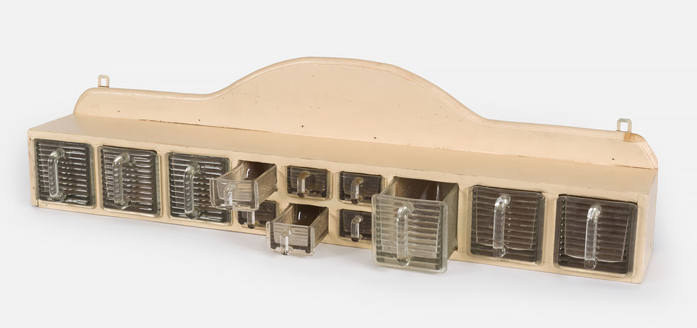 houten kruidenrek met glazen houders