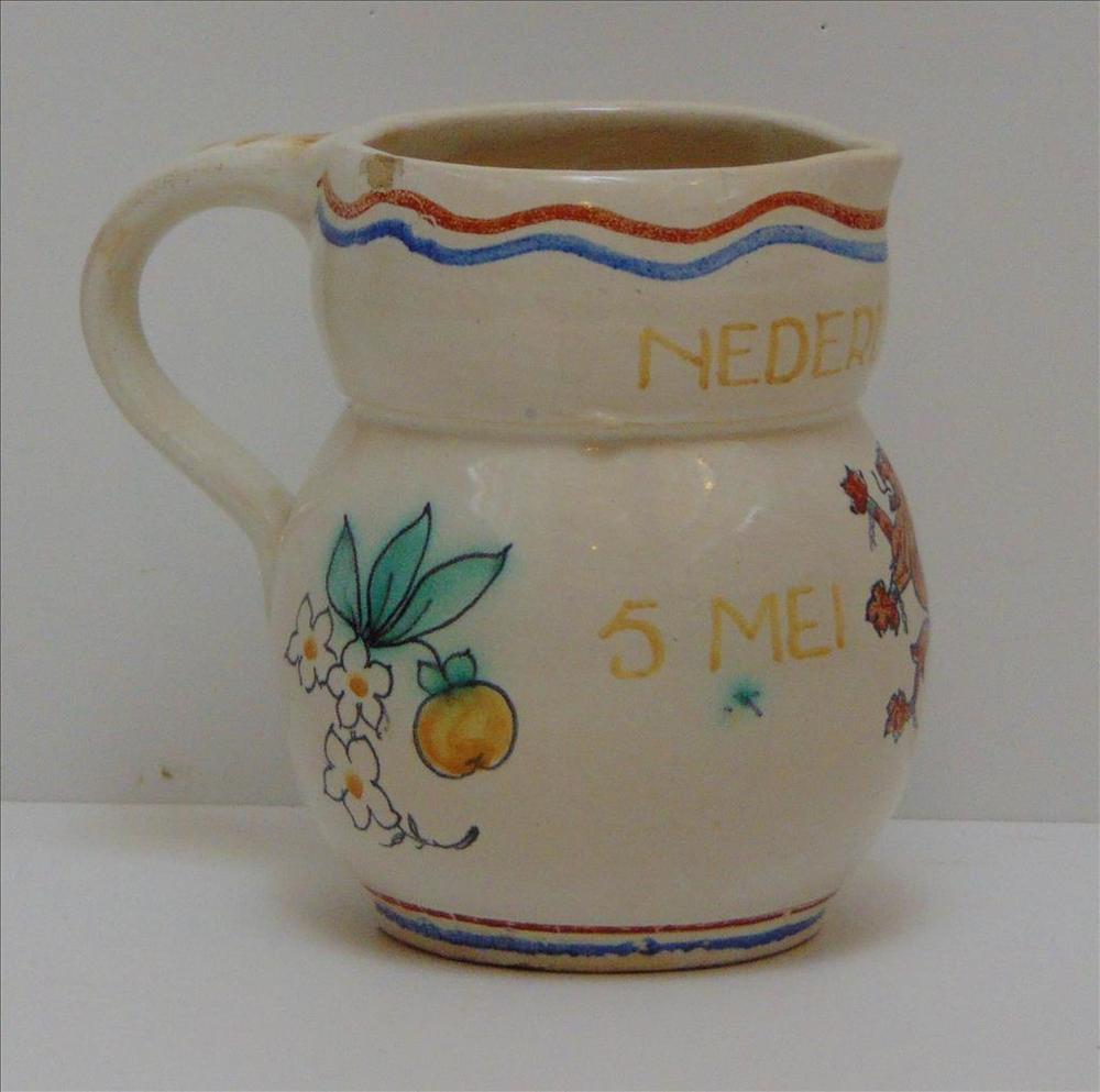 Schenkkan met de tekst : Nederland vrij 5 mei 1945