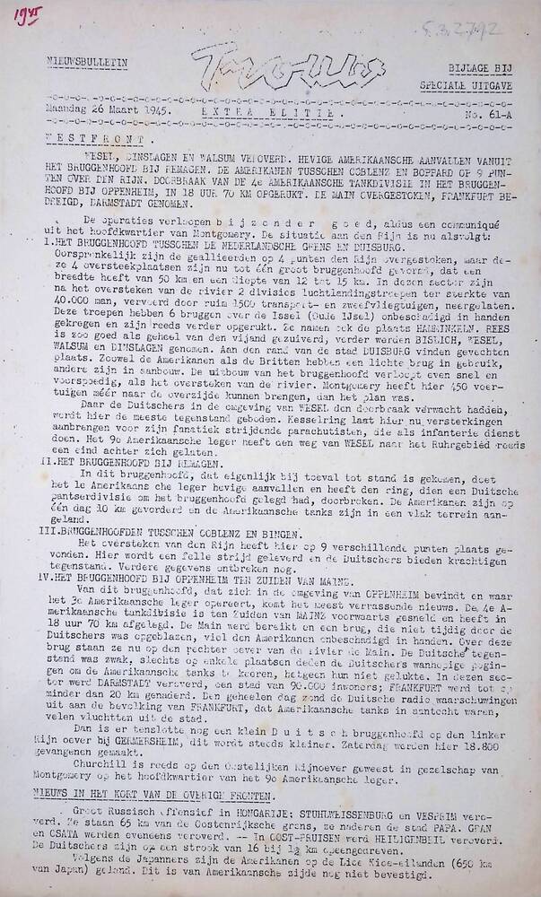 Trouw ( verschillende edities), Nieuwsbulletin, bijl...