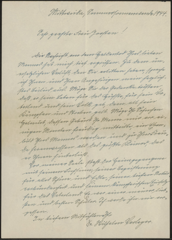 Brief aan Sehr Geerte Frau Joosten 25.5.'44