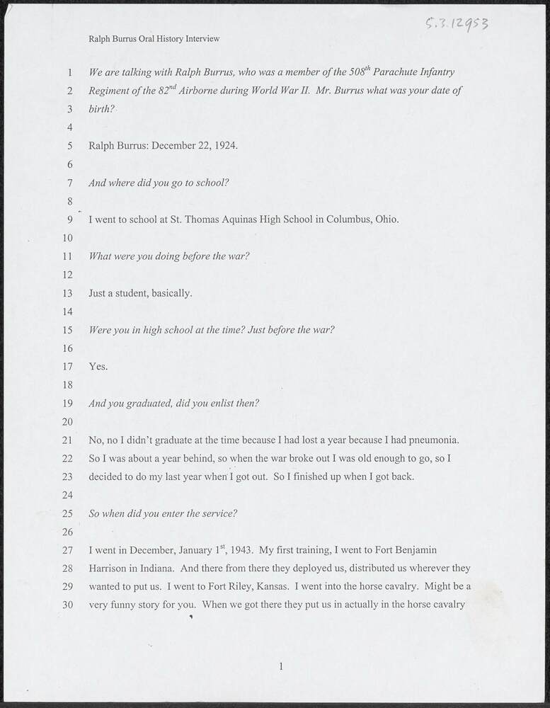 Transcriptie van het interview met Ralph Burrus.