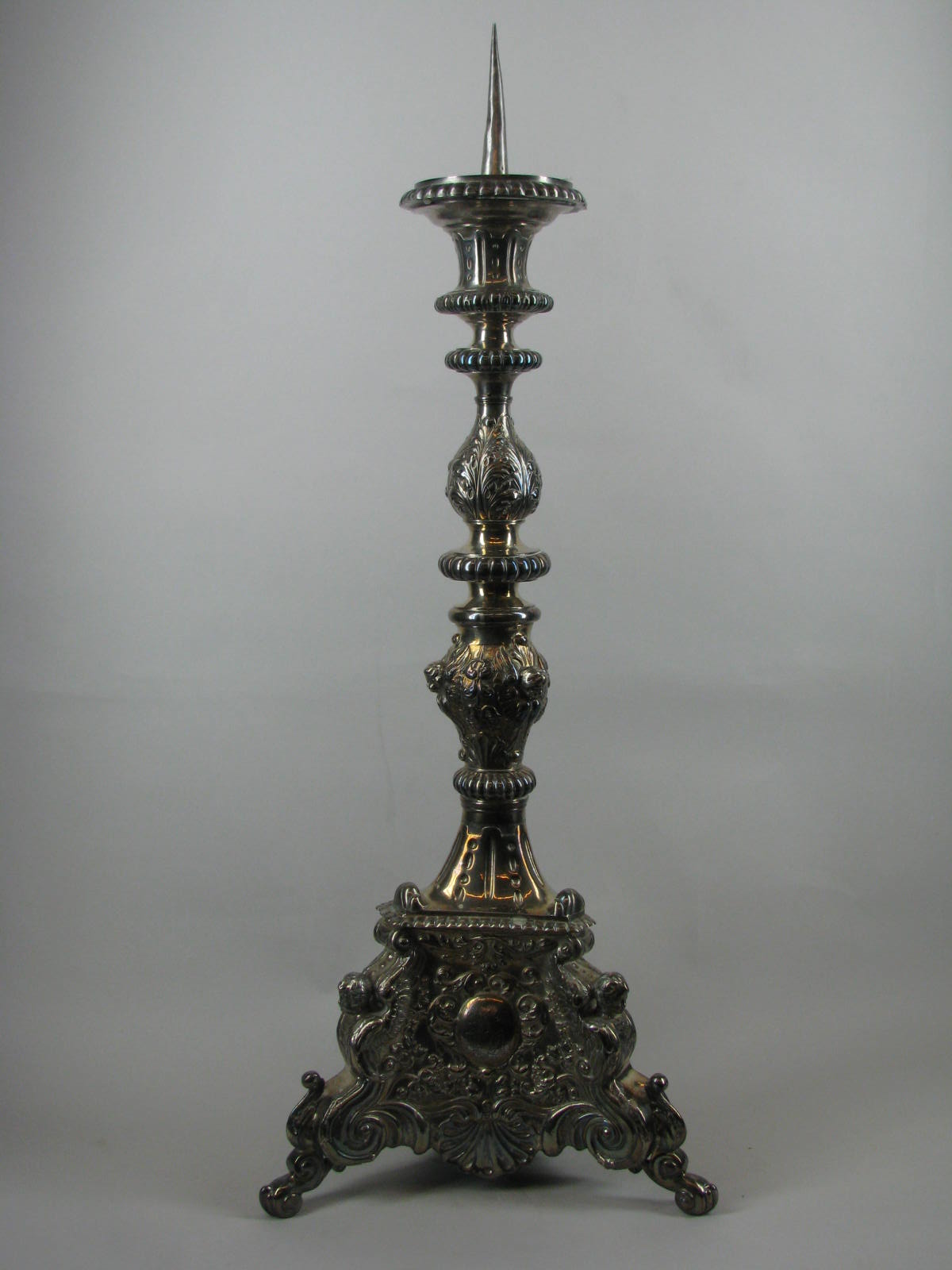Kandelaar met driezijdige voet op voluutpootjes met ...