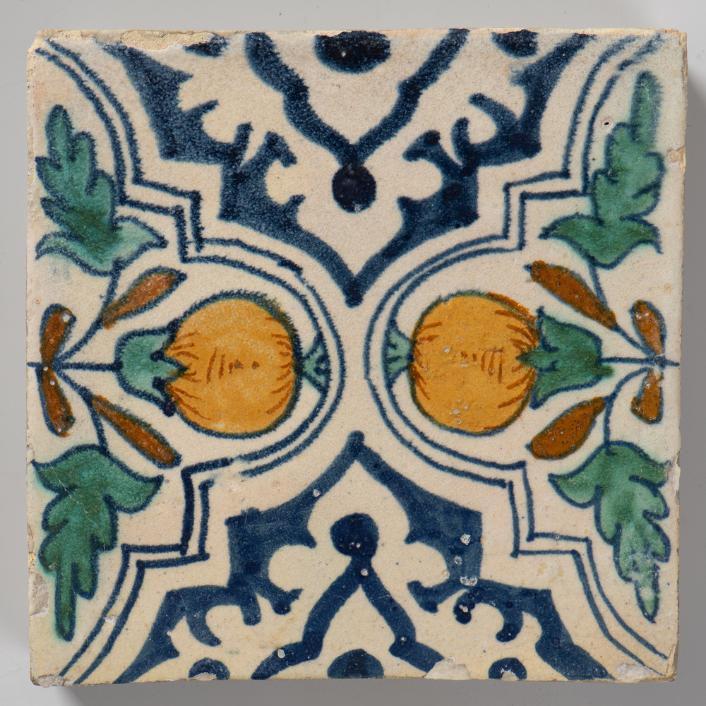 Tegel van keramiek met tinglazuur, voorstellende: or...