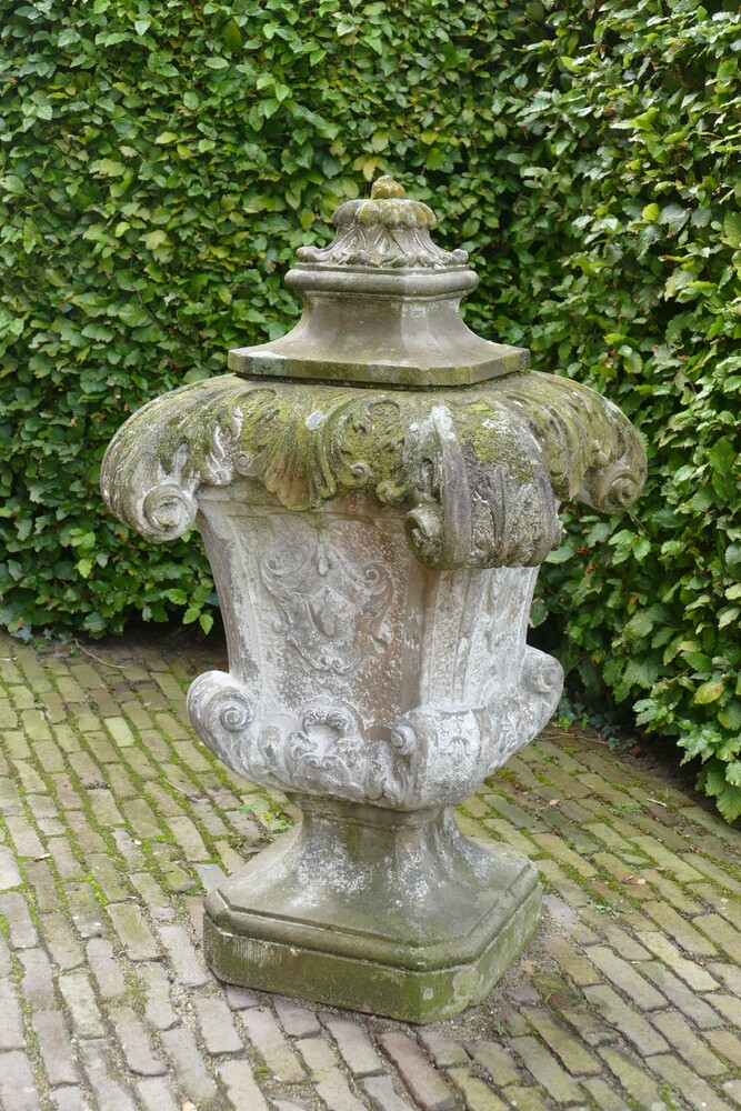 tuinvaas van hardsteen geassocieerd met de toegangsp...