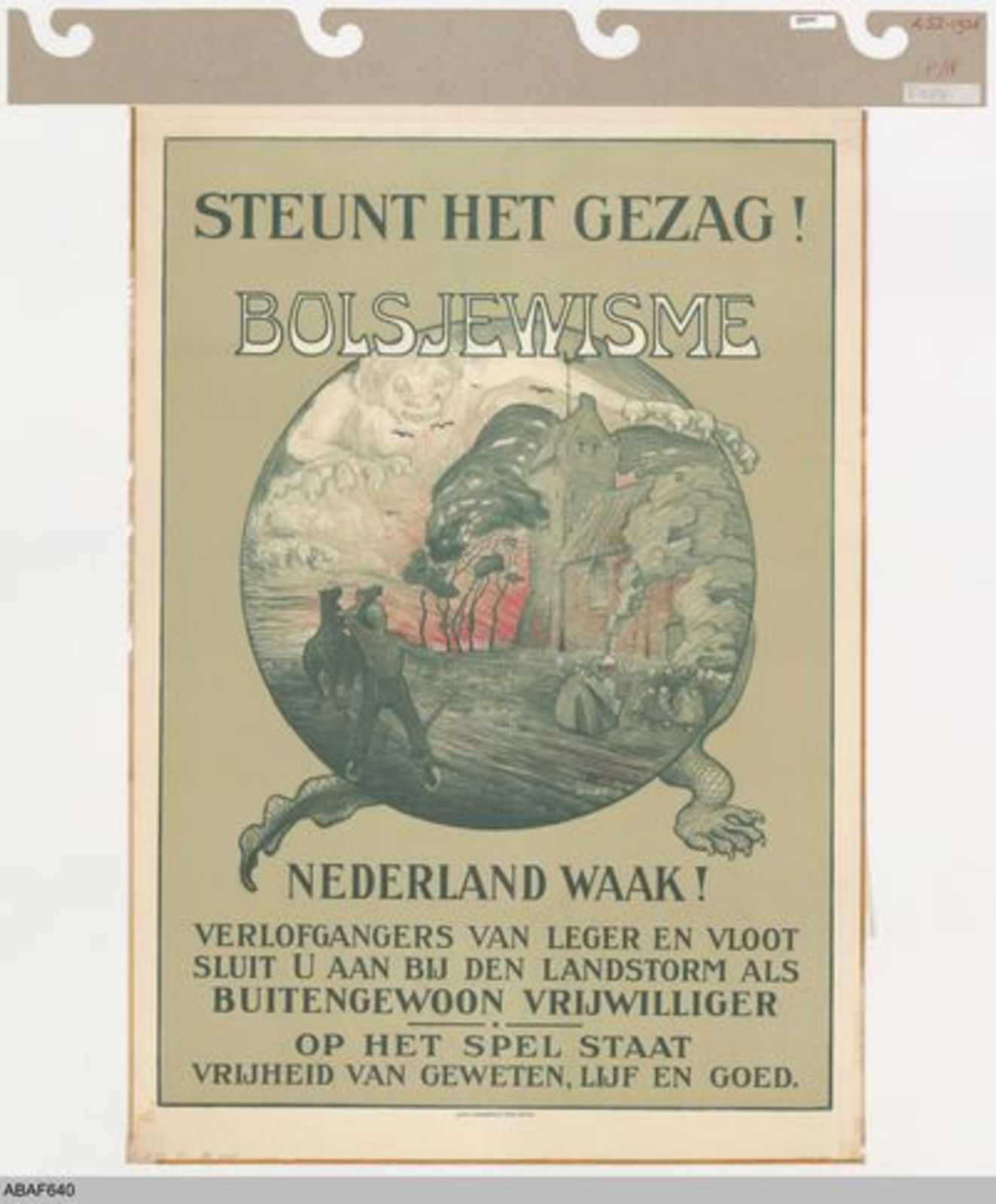 Steunt het gezag! Bolsjewisme. Nederland waak! Verlo...