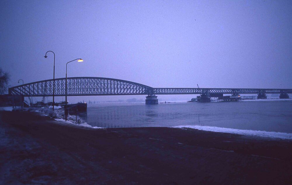 Foto, voorstellende de spoorbrug te Culemborg in aan...
