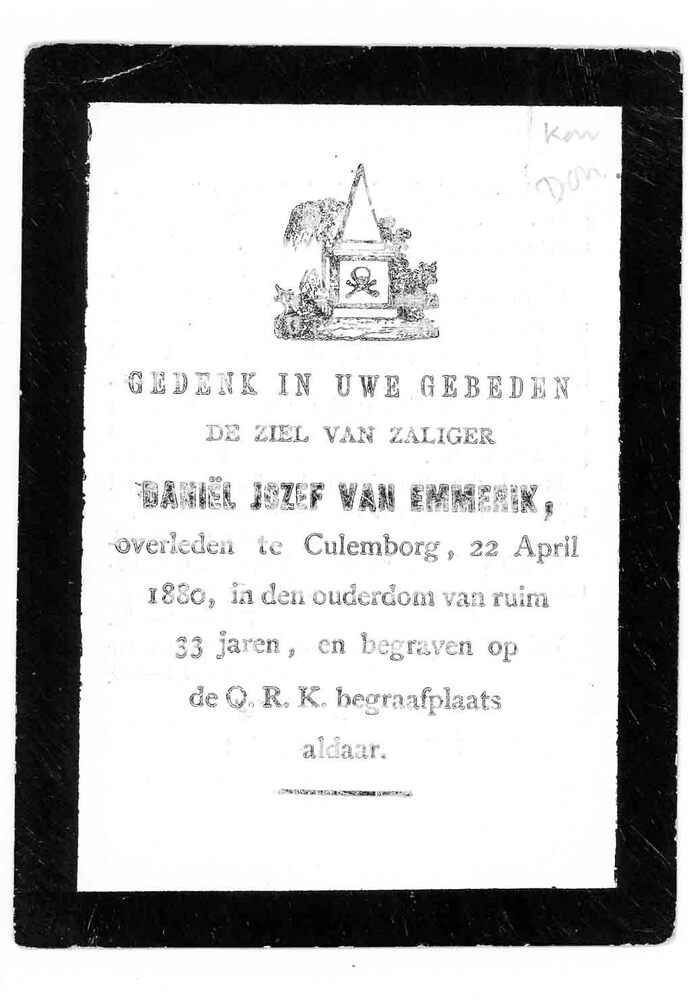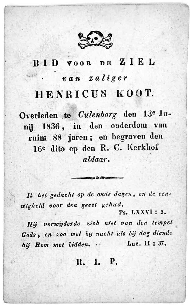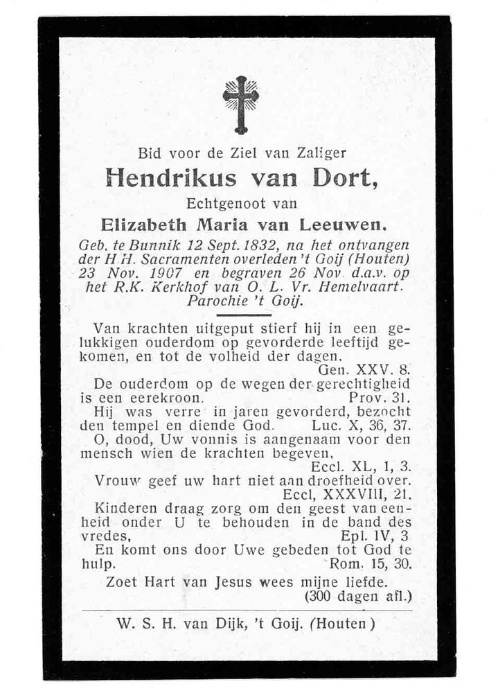 bidprent voor Hendrikus van Dort. Geboren 12-09-1832...