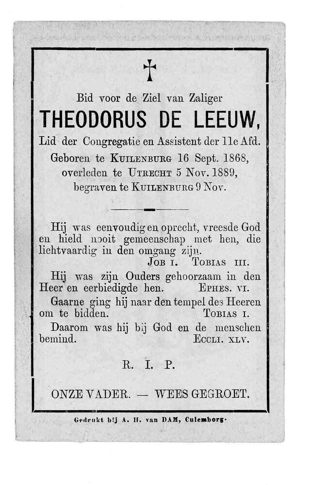 bidprent voor Theodorus de Leeuw. Geboren 06-09-1868...