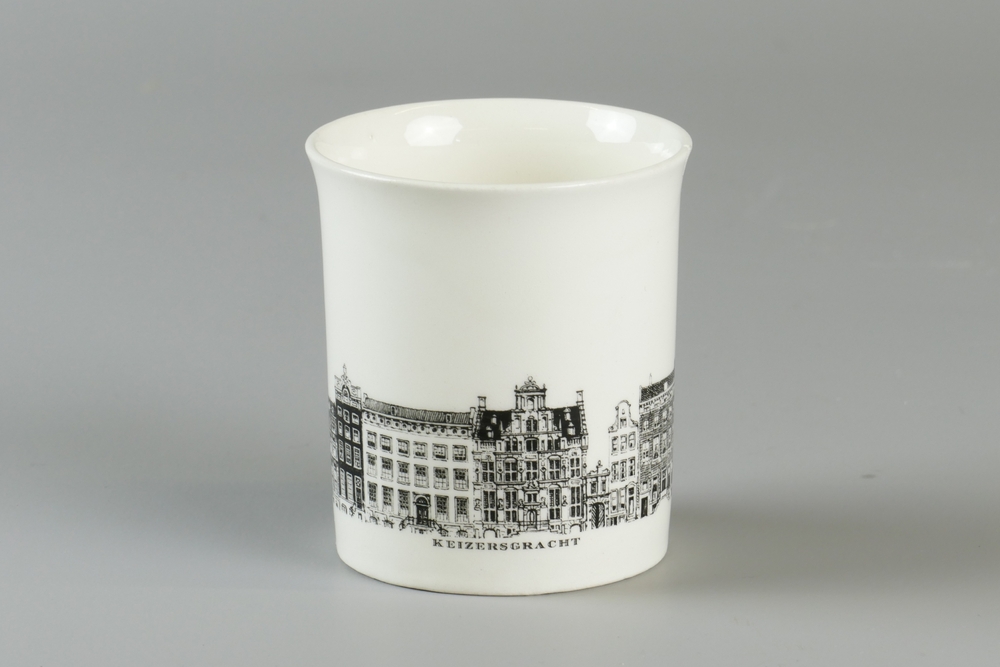 bekers, bedrukt met decor van Amsterdamse grachten g...