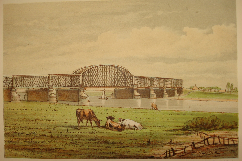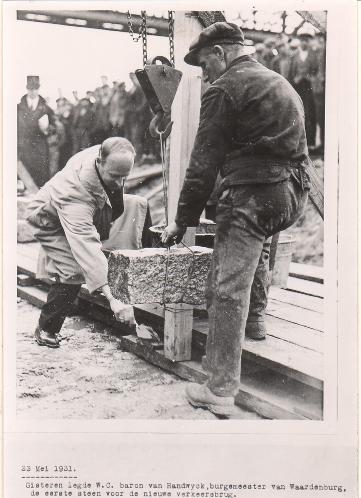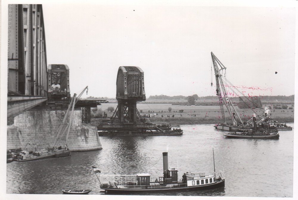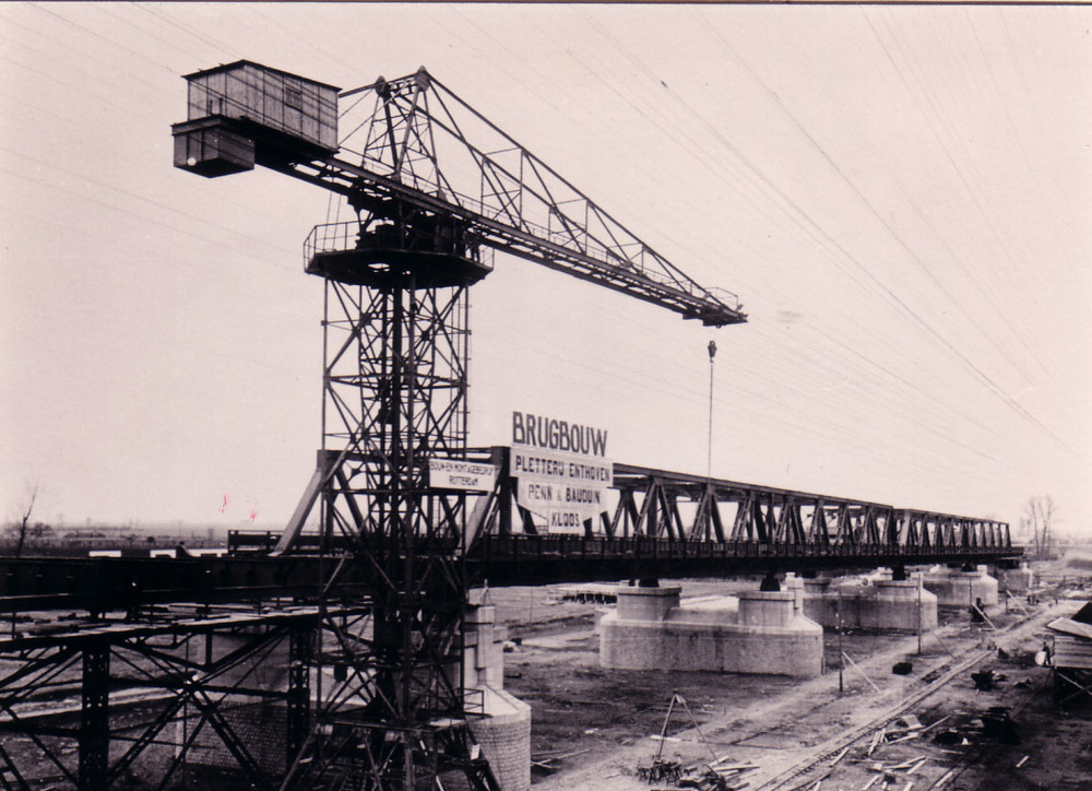 Bouw verkeersbrug over de waal bij Zaltbommel 1932.