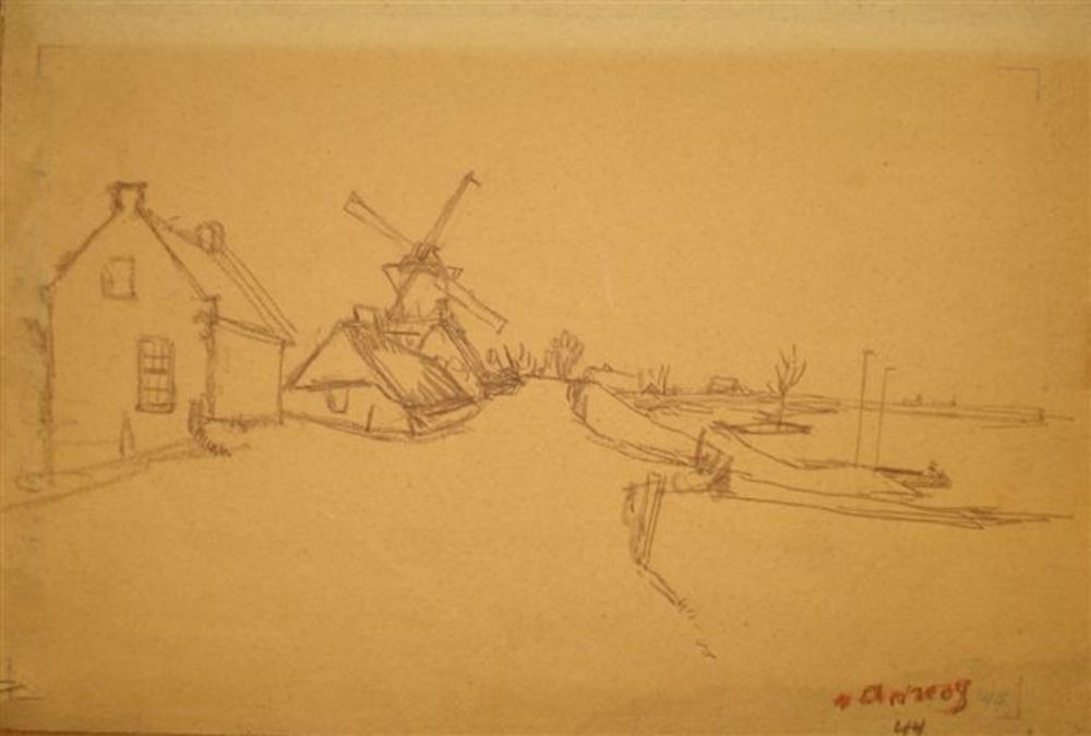 Potloodtekening, weg langs de Maas 1944 , Jan van An...
