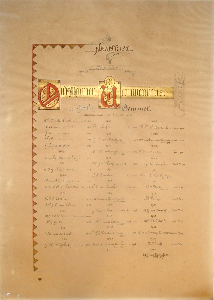 naamlijst Oude Mannen- en Vrouwenhuis, Zaltbommel. T...