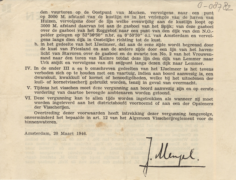 Visvergunning 1946 van Bessel Jonker, schipper van d...