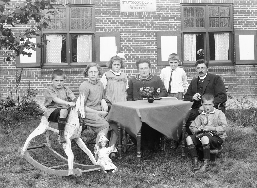 Groepsportret van een familie, bestaande uit zeven p...