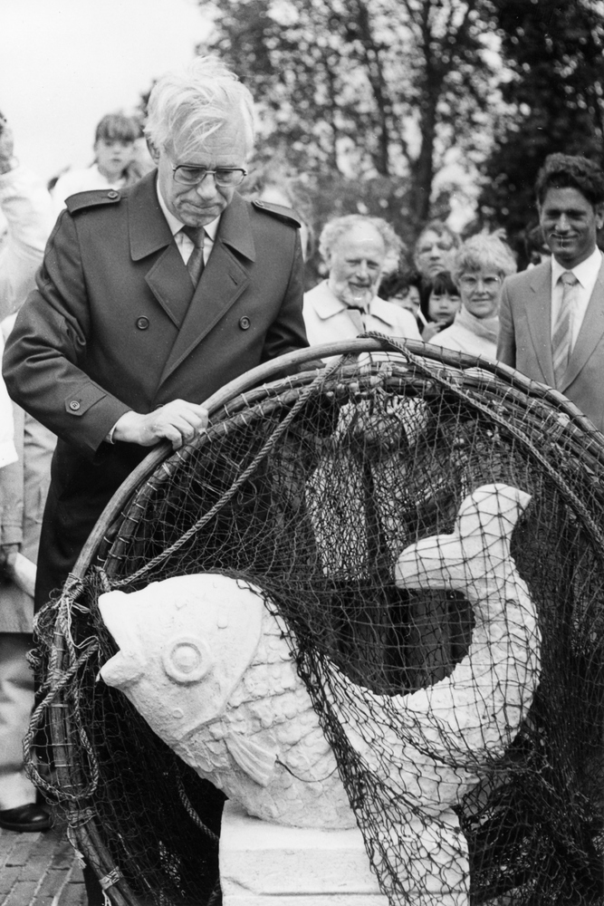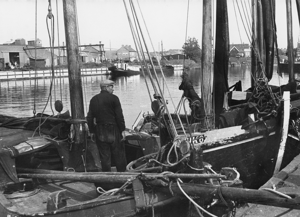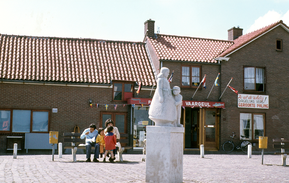 Havendam met vissersmonument en vishandel De Vaargeul