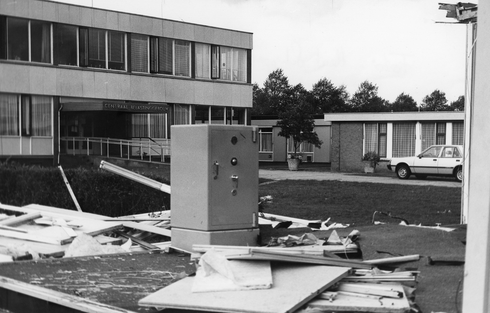 Stormschade bij het belastingkantoor aan de Couperus...