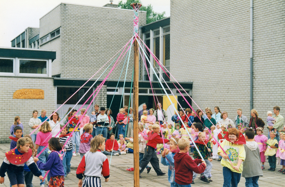 Dansen om de meiboom bij Vrije School Valentijn
