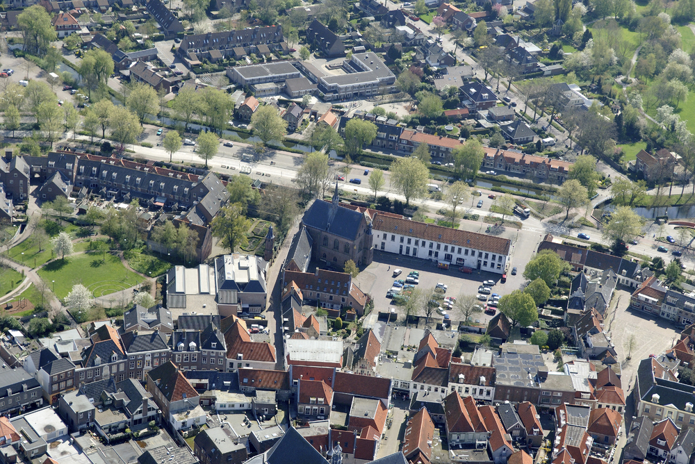 Luchtopname van de binnenstad van Harderwijk en groo...