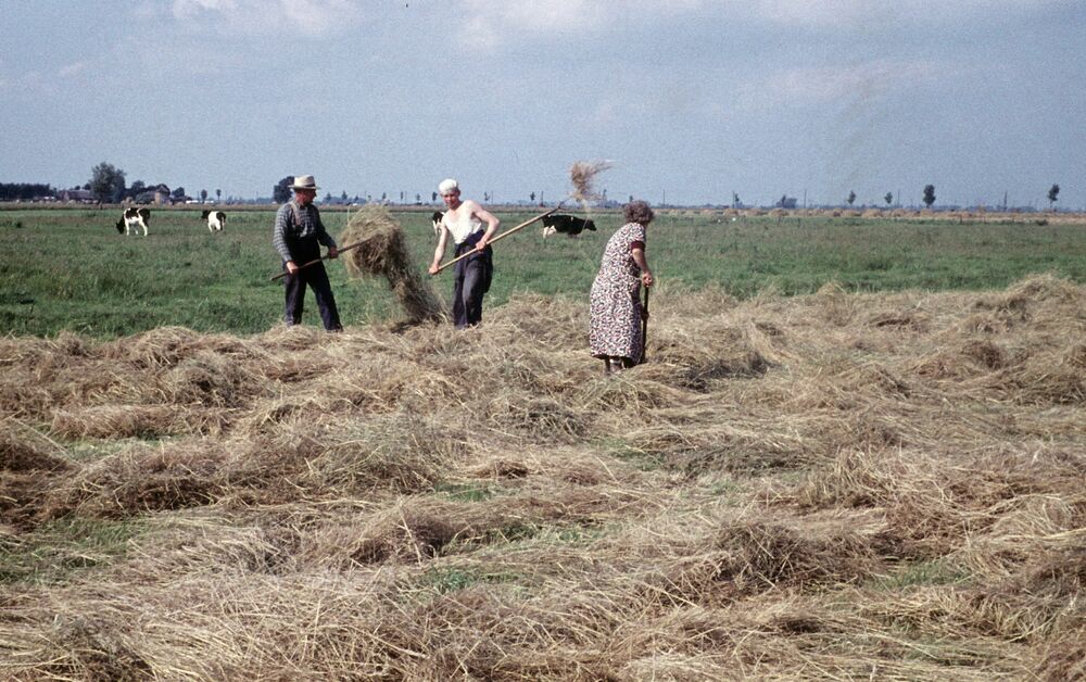 Handmatig omschudden van het hooi