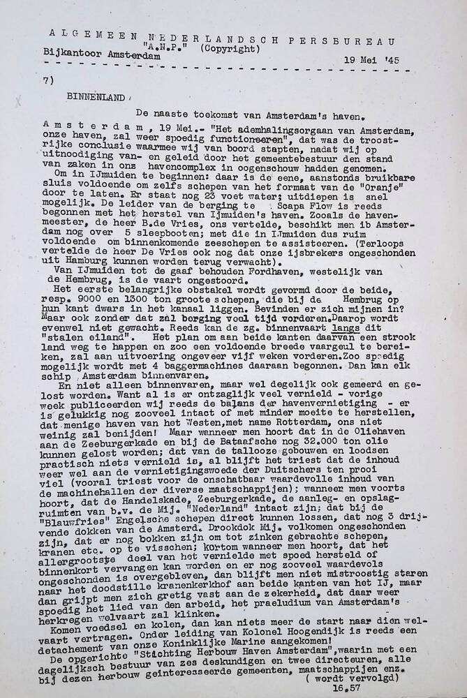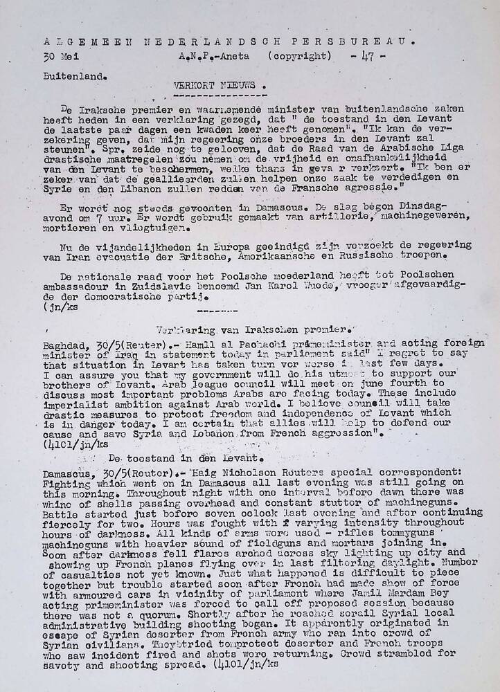 Algemeen Nederlandsch Persbureau, mededelingen, 30 m...