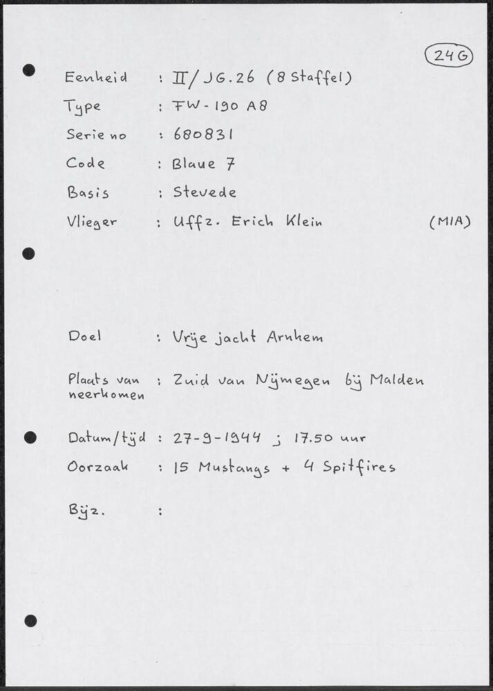 Korte beschrijving van een eenheid van de Luftwaffe