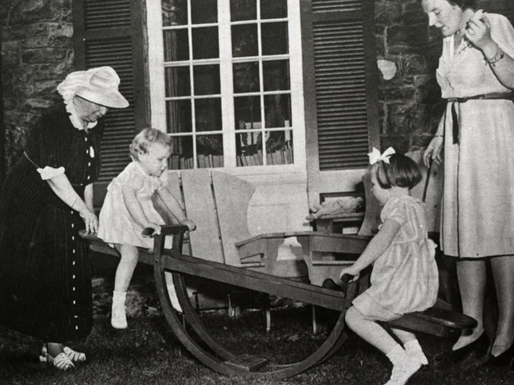 Foto van de jonge prinsessen Beatrix en Irene op een...