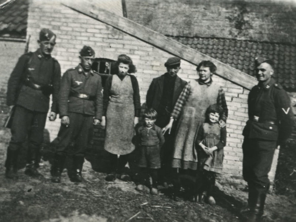 Foto van drie Duitse Luftwaffe militairen met boeren...