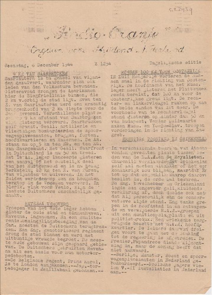 Radio Oranje, Orgaan voor strijdend Nederland, Woens...