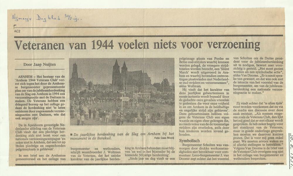 Veteranen van 1944 voelen niets voor verzoening