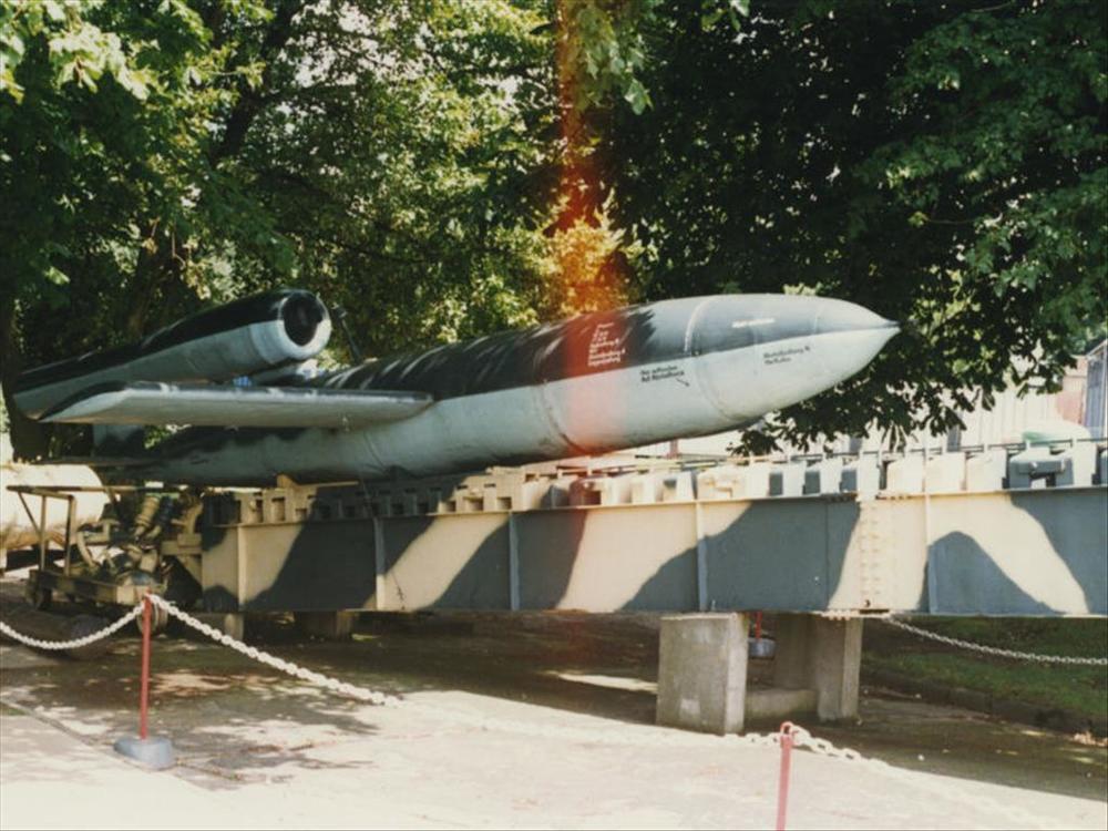 Foto van V-1 projectiel op afschiet 'rampe' in openl...