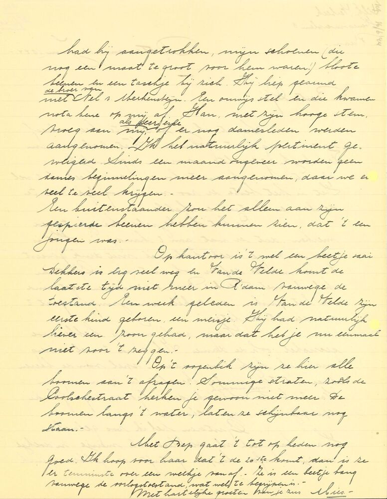 Brief van Mies in Rotterdam aan Gé Verbeek in Watens...