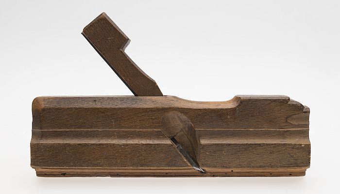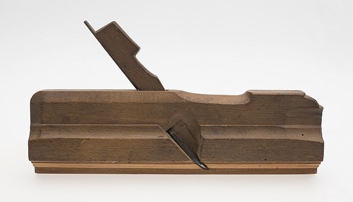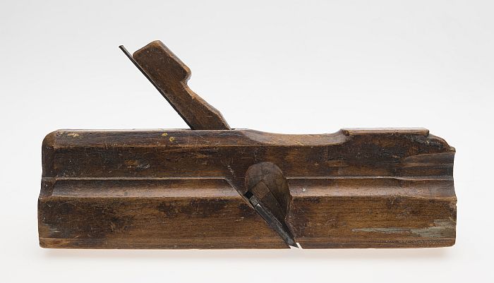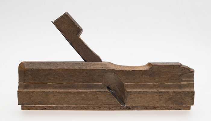 Houten profielschaaf, met initialen "CVE" en "IDG"