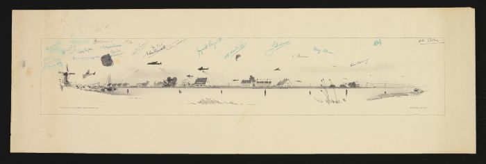 Litho van de voedseldropping boven Terbregge, door d...