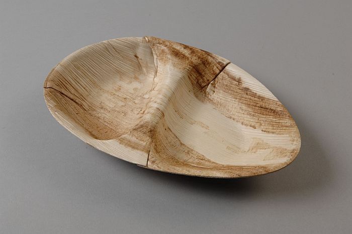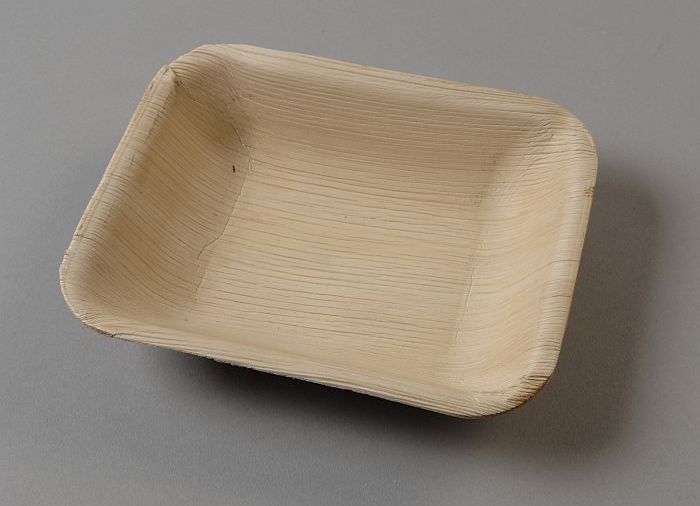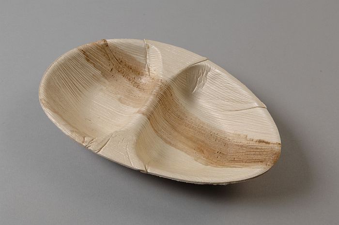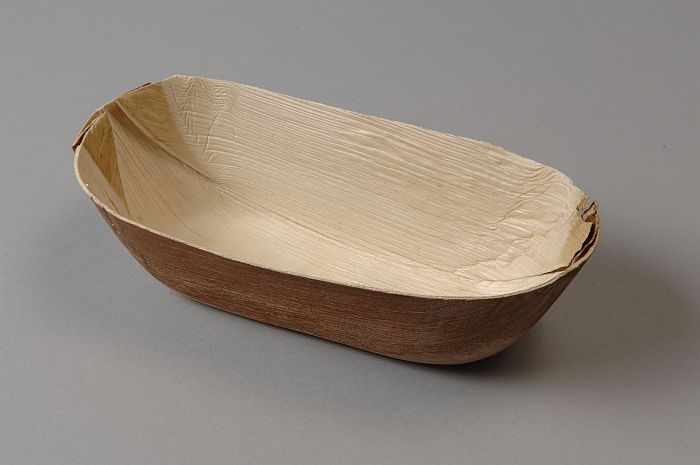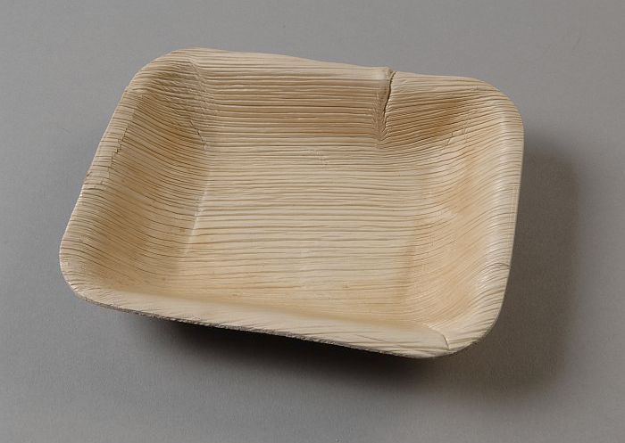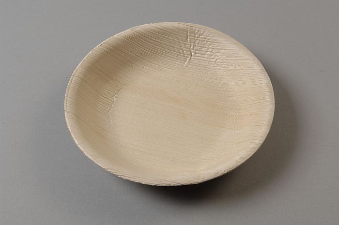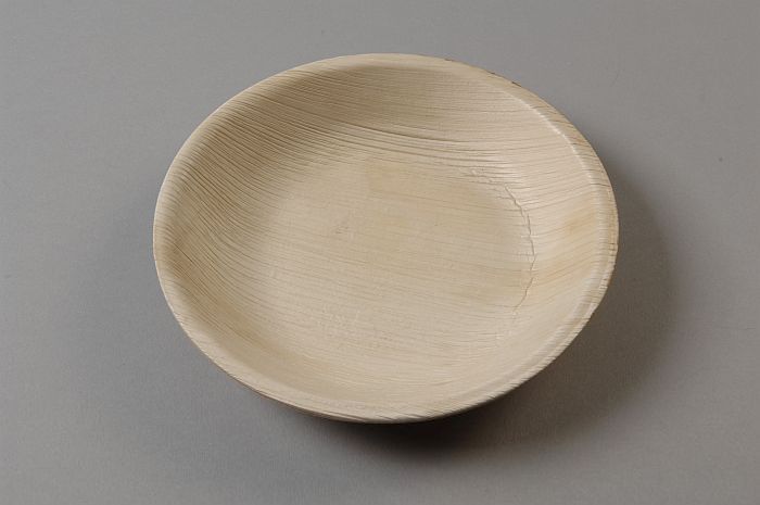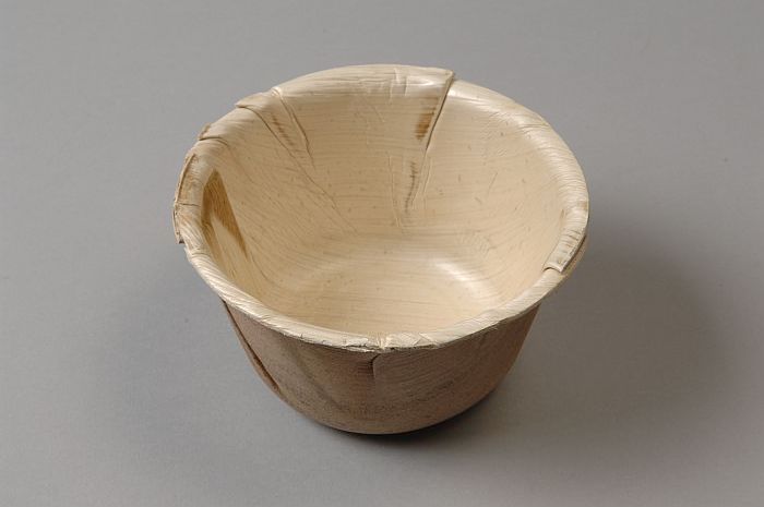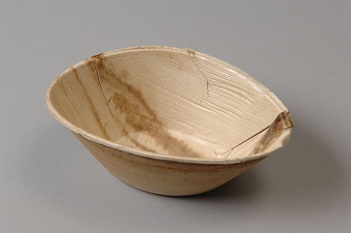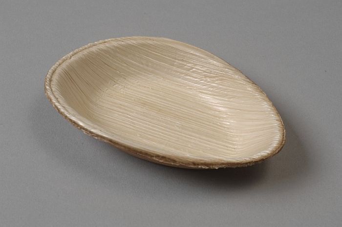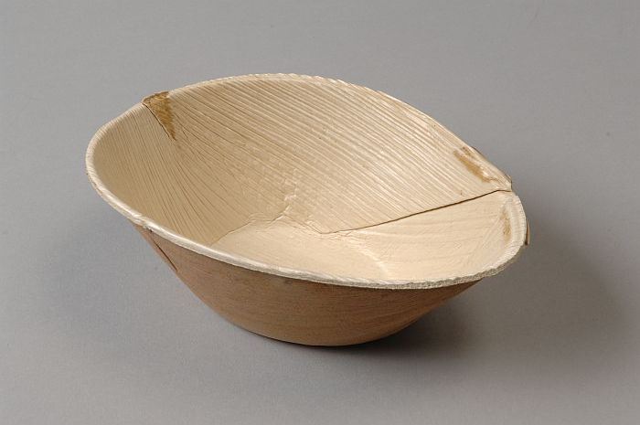 Wegwerp-kommetje van servies, van blanke palmbladeren