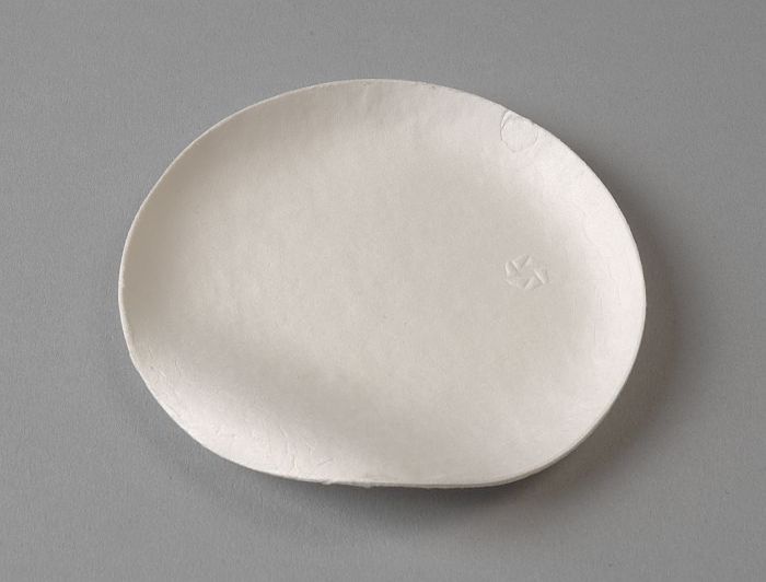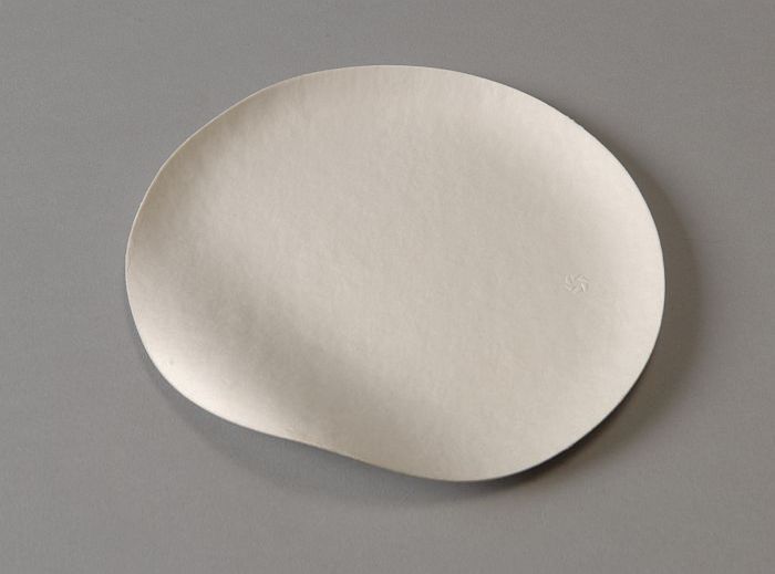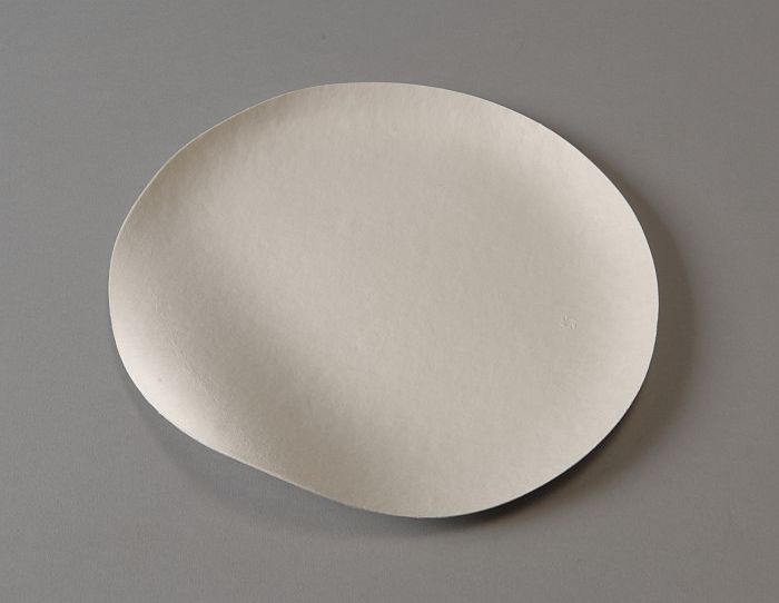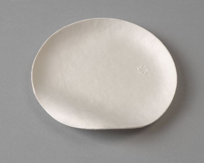 Klein ovaal wegwerp-bord van servies, van blanke pal...