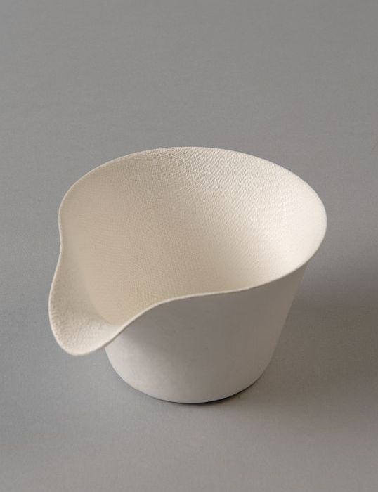 Kleine ovale wegwerp-kom van servies, van blanke pal...
