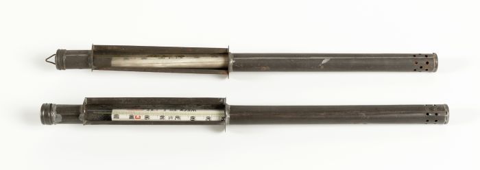 Twee buisvormige metalen weckthermometers