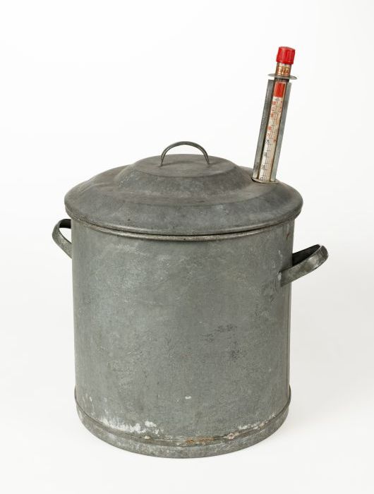 Zinken weckketel met deksel en thermometer