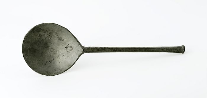 Houten holle schaaf, met initialen "CVE"