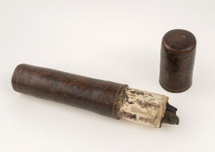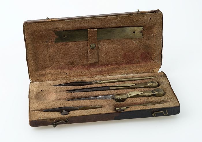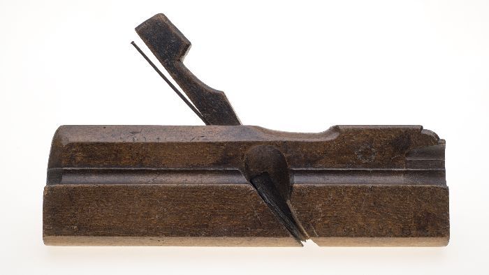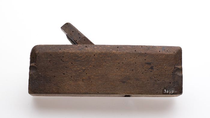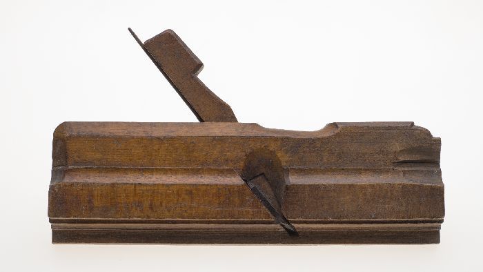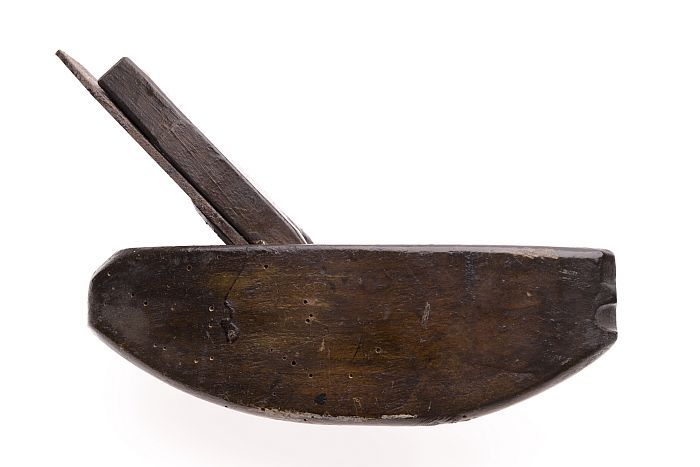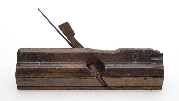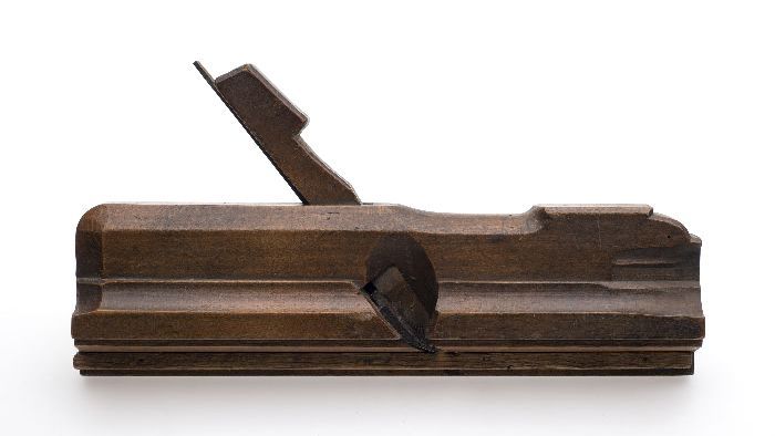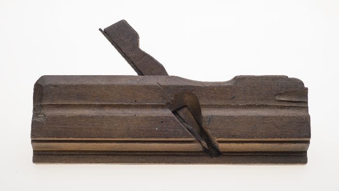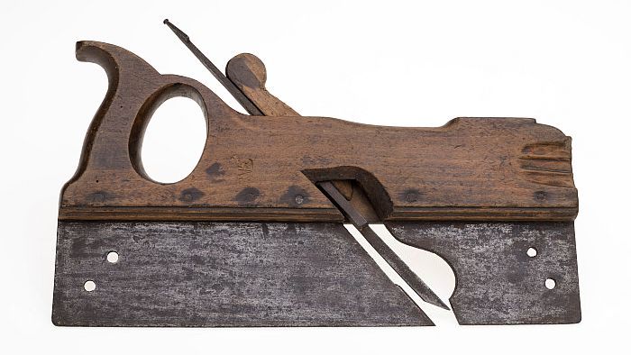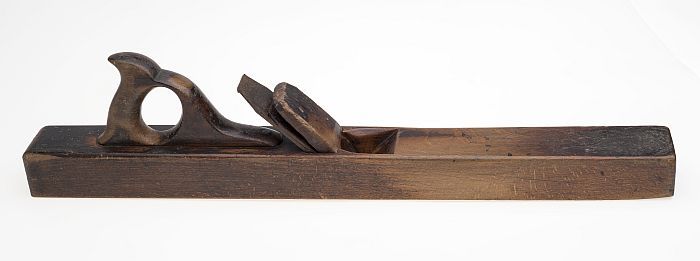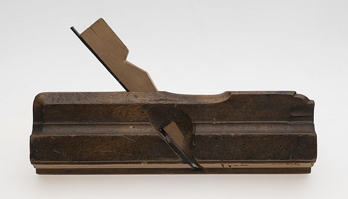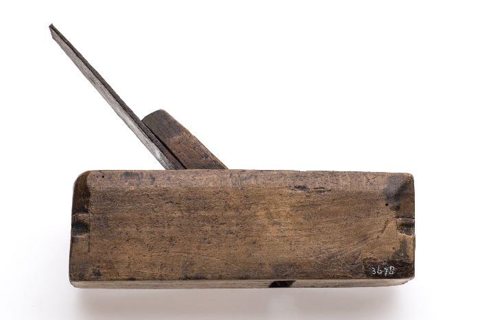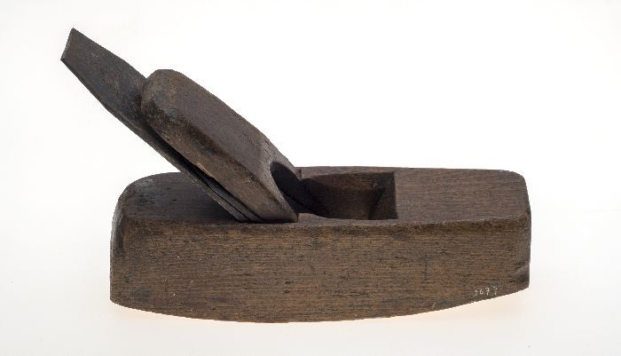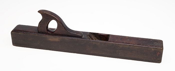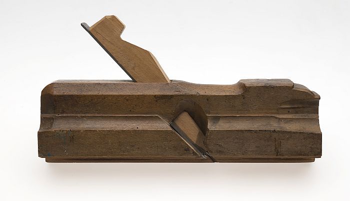 Houten profielschaaf, met eigenaarsinitialen "CVE"