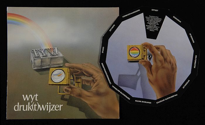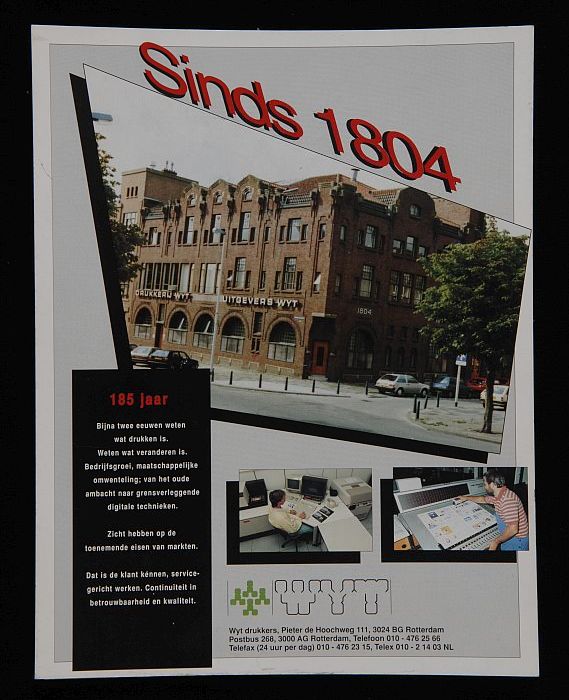 Reclame opzetkarton, affiche met foto van drukkerij Wyt