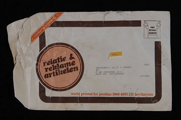 Envelop aan drukkerij Wyt met "relatie & reklame art...