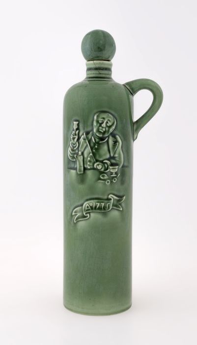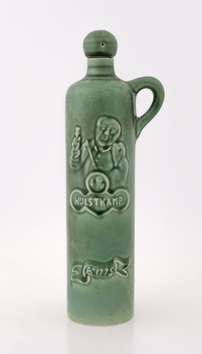 Hoge groene kruik voor jenever van "Hulstkamp"