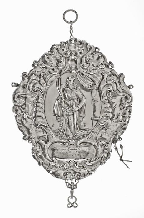 Zilveren hoofdmansschild van het St. Catharinagilde:...