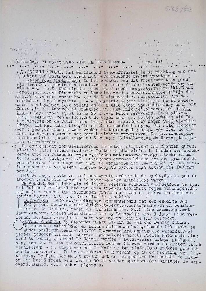 Het Laatste Nieuws, no 148, Zaterdag 31 Maart 1945