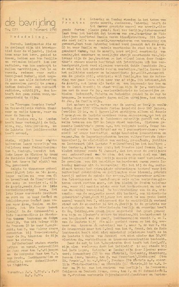 De Bevrijding. No. 200. 5 Februari 1945.