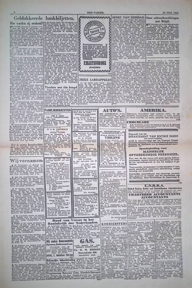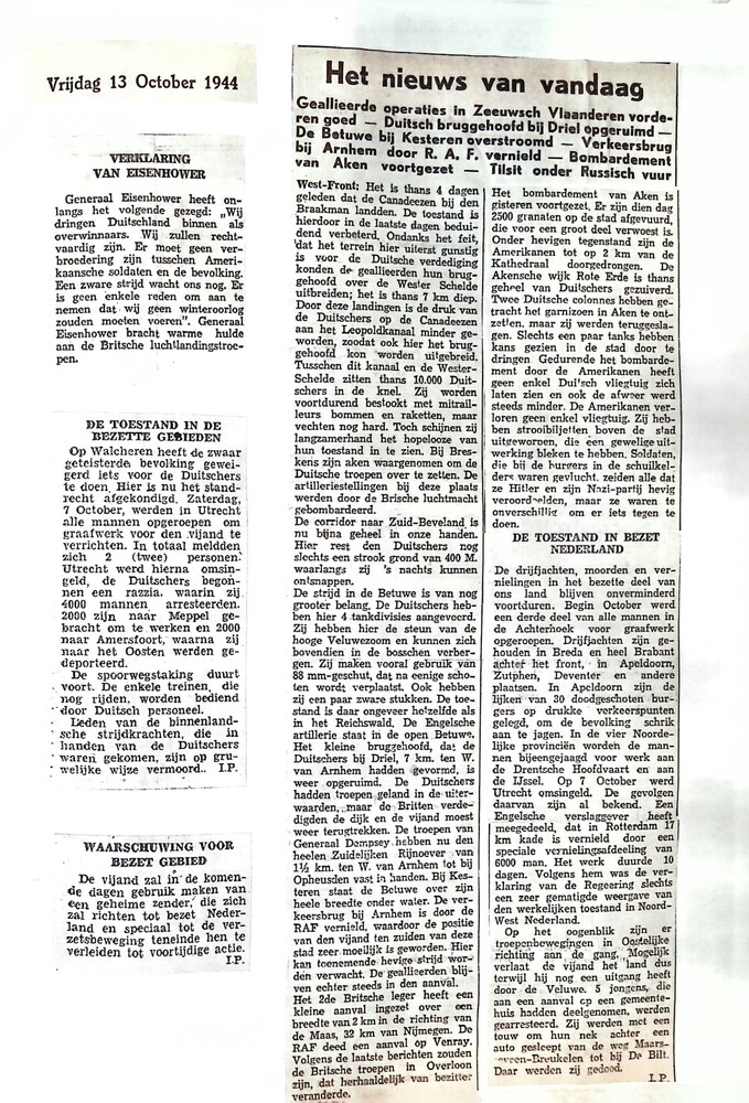 Plakboek met krantenknipsels 1944. Van Mevr J.M. Ste...