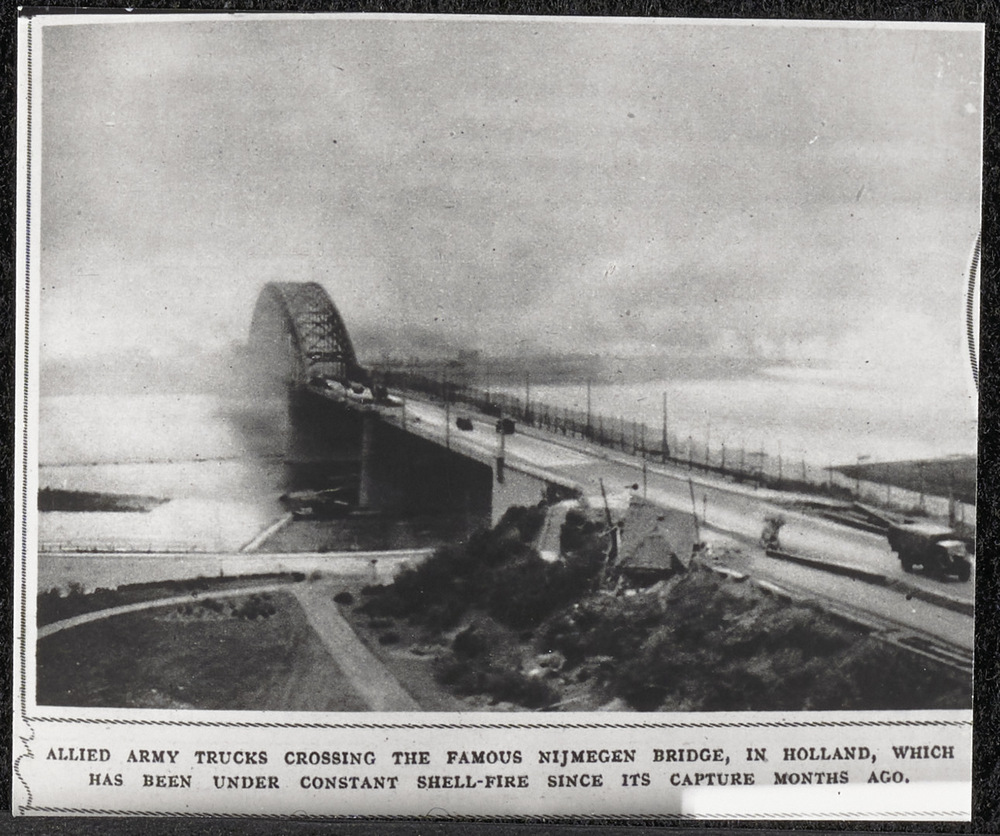 Britse trucks steken de Waalbrug over, gefotografeer...