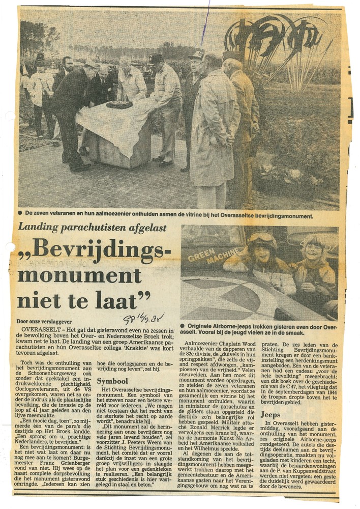 De Gelderlander - Bevrijdingsmonument niet te laat